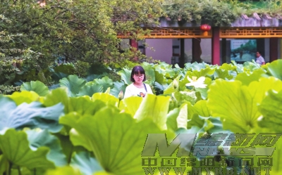 夏天,绵阳富乐堂里,大片大片的荷花悄悄地伸出了花骨朵,与绿莹莹的荷叶相映成趣。在六月的几场雨后,她们便如同约好了一般在湖畔开成了片。市民利用周末,三五成群地相约去观景赏荷,享受夏日独有的韵味和清凉。  (本报记者 田明霞 摄)