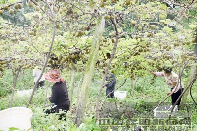本报讯(彭彬 本报记者 赵斌 文/图)日前,记者在三泉乡丝公、天星等村采访看到,连片种植的2000多亩猕猴桃进入丰产期,地里铺满了黑乎乎的沼渣,每棵树上密密麻麻结满了一串串的猕猴桃。目前,通过农村电商,逾七成生态猕猴远销北上广,预计可实现年产值2000万元。