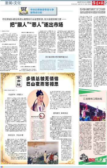 “李商隐承袭了李贺诗风,更由于接触现实比较广阔,又受到杜甫影响,故能变幽冷而深婉,形成了深情绵邈、绮丽精工,既精丽而又富于暗示的独特风格。”三台博物馆文博副研究馆员左启向记者介绍道,李商隐除了是写诗高手也是骈文高手,在梓州创作的《梓州慧义精舍南禅院四证堂碑铭序》影响及于海外。