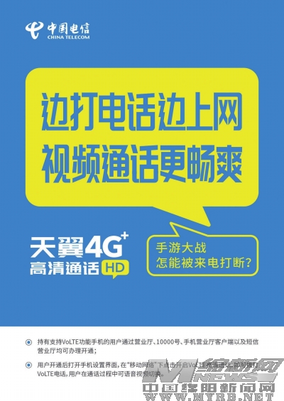 日前,中国电信绵阳分公司宣布正式开通VoLTE业务全面试商用,为广大用户提供高清语音、视频通话服务,通话质量比普通语音有极大提高,语音接续可“秒通”。试商用期间,中国电信VoLTE高清语音和视频通话均纳入用户现有资费产品,按普通通话资费标准计收。