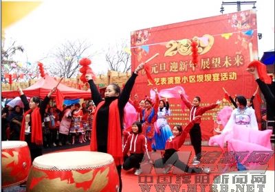 在游仙区绵山路社区,为庆祝元旦的到来,由社区主办的“迎新年、庆元旦,展望未来”文艺表演热热闹闹地举行。居民自编自导自演的歌舞、小品等节目赢得了现场观众的欢呼。大家其乐融融,满脸幸福,欢欢喜喜迎新年。