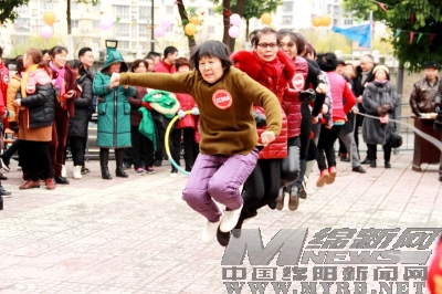 企鹅漫步、跳大绳、踢毽……游仙区韩家脊社区举办的“庆祝改革开放四十年社区居民乐翻天”趣味运动会吸引了辖区各居民小区、商家代表组成的10支队伍、300余人参加。一个个项目有序开展,参赛运动员本着“友谊第一、比赛第二”的原则公平竞赛,辖区居民间浓浓的邻里情、友爱情萦绕整场比赛。