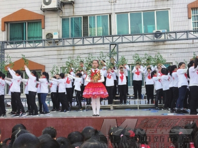 本报讯(张秀芳 左发兵 文/图)3月11日,游仙区富乐实验小学利用升旗仪式开展了“3·12”植树节主题教育活动,号召全校师生爱绿、护绿。活动中,六年级一班的全体同学表演了诗歌朗诵《我是一棵小树》,以及演唱《好大一棵树》。同学们以艺术的形式,提醒全校师生保护环境,种植花草树木,赢得全校师生的好评。