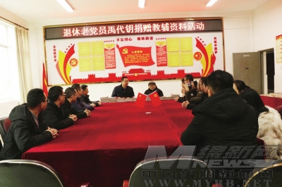 本报讯(朱明光 陈德会 何金泽 文/图)“安中情,永远情!”近日,安州中学退休老教师、老党员禹代钥专程回校捐赠自己珍藏的地理教辅资料。学校校长及地理学科组教师出席了捐赠仪式。