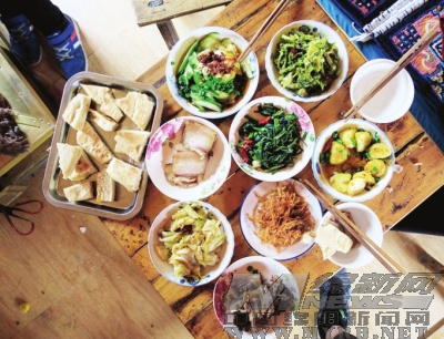 (感受九皇山浓郁的西羌文化,可在此品羌家特色美食:羌家老腊肉金裹银、银裹金、苦荞凉粉等)