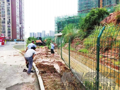城郊乡下龙溪村对山洪灾害隐患点、危房、堰塘等进行排查巡查,确保村民人身财产不受损失。南山街道的党员干部群众及志
