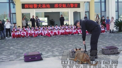 本报讯(郑永刚 文/图)11月1日下午,绵阳市公安局刑侦支队警犬技术大队举行了“探秘警犬基地,感受警营魅力”的警营开放日活动,东辰一小4年级4班的师生及部分家长一起走进警犬基地,近距离接触英勇警犬。
