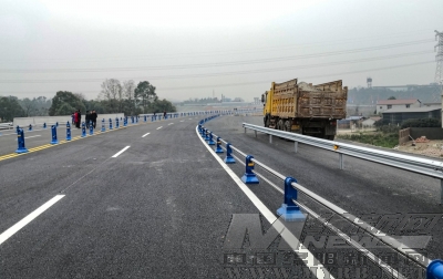 记者看到,新建的九绵高速青莲互通A匝道全长1.65公里,包括两座匝道桥,一处收费站,为双向六车道,两侧设置波形防撞护栏,中央设置0.9米高隔离栏杆,机非车道设置0.6米高隔离栏杆,车道之间用标线分隔。该路段的导流通道绵阳端顺接长度106米,顺接路口宽25米,在A匝道1号桥0#台位置安装限高、限重龙门架。江油端顺接长度236米,设置21跨钢便桥1座,桥面宽21米,顺接路口安装限高、限重龙门架1座。