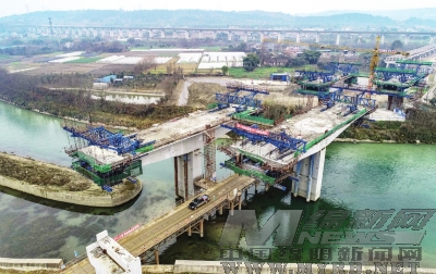 本报讯(记者 田明霞/文 蒲滔/图)1月17日,记者来到九绵高速江油涪江特大桥工地看到,碧玉如镜的宽阔涪江上,在建大桥箱梁如船,正从两岸缓缓靠近,数十台工程机械、上百名施工人员正在忙碌……据施工负责人介绍,该桥跨涪江水面长约130米,施工难度较大,采用挂篮悬臂浇筑方式铺设桥面,将于2020年7月合龙。