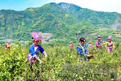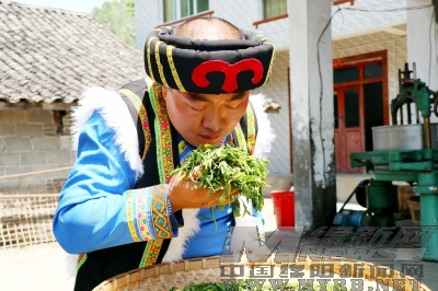 本报讯(记者 蒲滔 文/图)近日,记者在北川羌族自治县陈家坝镇金鼓村看到,山坡上的茶园里,身着民族服装的羌族儿女欢快地采茶,脸上洋溢着丰收的喜悦。