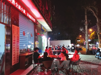 本报讯(记者 杜畅 文/图)“爆炒小龙虾一份,啤酒一瓶。”近日,游仙区五里堆路社区的居民们夜晚路过社区办公场所时发现,以往只为社区日间照料中心供餐的小食堂,俨然成了一个“大排档”,里面坐满了就餐的食客;而一旁每到下班时就关门的社区服务中心内灯火通明,不时还有居民前来办理业务,成为社区夜间一道靓丽风景。