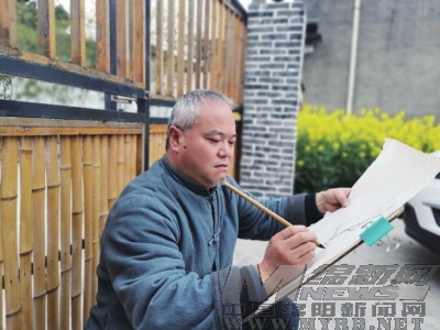 前不久,他和绵阳画家王久江等,先后到剑阁、邻水、安岳等地采风写生,剑阁拦马墙的先秦古柏、邻水天意洞的百米飞瀑,安岳的千佛石刻艺术等等,给他以极大震撼,受益良多。于江认为,山水画的创作能为书法创作服务,增加了艺术的多元化,也使得书法作品有了更多的丰富性,书中有画,画中有书,是他一直追求的最高境界。