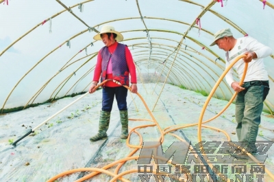 在游仙区新桥镇小堡村公路一旁,40多座西瓜大棚整齐排列,棚内一株株西瓜苗长势喜人,孕育着增收致富的新希望。10多位在家门口务工的“50后”、“60后”村民分工劳作,栽瓜苗、喷头浇水,有序地忙碌着。“现在的道路四通八达,搞农业运输非常方便。”瓜农刘先生说,等到6月份进入丰收期,这些西瓜主要销往绵阳本地,也欢迎大家来现场采摘品尝。