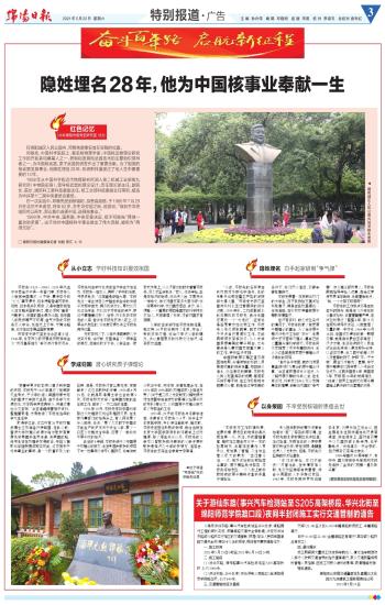 “从此,邓稼先的名字便在刊物和对外联络中消失,他的身影只出现在警卫严格的深院和大漠戈壁。”市委党史研究室宣传科科长王仕春提供的资料记载,1958年秋,二机部副部长钱三强找到邓稼先,告诉他国家要放一个“大炮仗”,征询他是否愿意参加这项工作。邓稼先义无反顾地同意,回家对妻子只说自己要调动工作,不能再照顾家庭和孩子。从小受爱国思想熏陶的妻子明白,丈夫肯定是从事对国家有重大意义的工作,表示坚决支持。