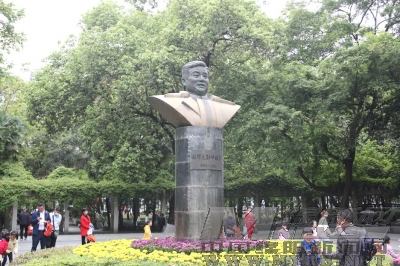 在绵阳城区人民公园内,邓稼先塑像安放在显眼的位置。