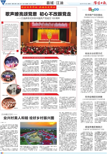 科技创新“增活力”。2021年江油市开展小麦、油菜等新品种、新技术试验26个,展示新品种(品系)245个,新技术11项;共建设水稻、小麦、油菜等粮油作物绿色高质高效示范片13万亩,建设现代标准化经作基地1.5万亩,实行全程机械化,大力推广免耕带状浅旋播种、绿色施肥施药等技术,良种覆盖率达96%以上,主推技术到位率95%以上。