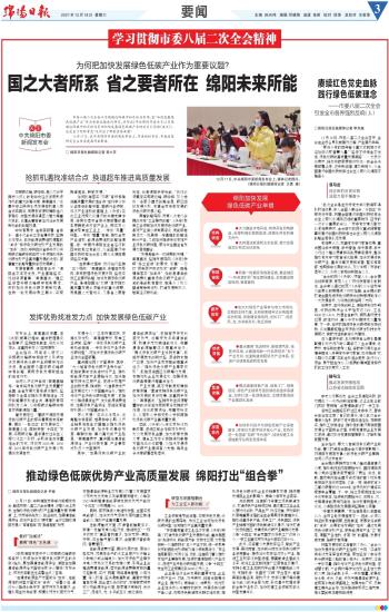 发展有需要,绵阳有条件。“绵阳生态本底优良,产业基础坚实,科创资源富集。”窦建磊说:“理应坚定落实碳达峰碳中和新要求,积极抢抓绿色低碳发展新机遇,在新一轮发展中勇立潮头,实现换道超车、跨越发展。”