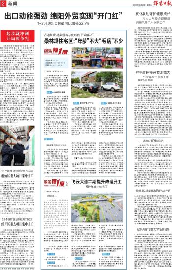 “飞云大道二期改造提升项目计划今年底主体完工。”3月22日,绵阳交发恒通建设工程有限责任公司董事长王智勇告诉记者,飞云大道改造提升项目一期(磨家收费站至辽宁大道)此前已经完成,飞云大道二期(辽宁大道至周家大院路口东侧)改造提升项目开始施工,按照计划,12月31日全线主体完工。