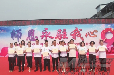 本报讯(杨光明文/图)九月的大地硕果飘香;九月的校园祝福飞扬。在第38个教师节来临之际,安州区沙汀实验中学隆重举行了以“师恩永驻我心”为主题的庆