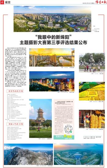 本报讯(绵报融媒记者蒲滔)聚焦新绵阳,定格绵阳发展变迁,述说一段与绵阳相关的有趣而精彩的故事。日前,由中共绵阳市委宣传部指导、中共绵阳市委对外宣传办公室主办、绵阳日报社承办、绵阳市摄影家协会协办的“我眼中的新绵阳”主题摄影大赛第三季作品各项评选活动圆满结束,共39幅作品“名花有主”。