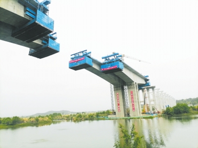 作为成渝地区双城经济圈建设重点交通项目——G5京昆高速广元至绵阳段扩容工程建设进度条不断刷新。在该项目重点控制性工程——潼江河特大桥施工现场,工人们正加紧对大桥的连续梁进行作业。据了解,潼江河特大桥全长1398米,目前已累计完成孔桩172根、承台18个、墩柱3095米。大桥预计右幅6月合龙、左幅8月合龙。