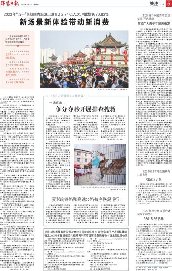 文化和旅游部5月3日公布2023年“五一”假期文化和旅游市场情况