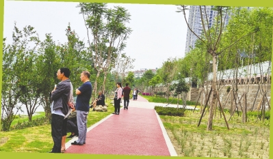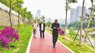 “没想到以前‘脏乱差’的河边,现在不仅有绿道,还种了这么多花草树木,到河边散步再也不用踩泥巴路了。”80岁的孟大爷一边欣赏眼前的美景,一边和同行的亲友聊天。还有不少市民用手机记录下眼前的变化。