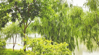 除了各种花卉,还栽有香樟、乌桕等乔灌木,多类型的湿地植物为鸟类提供了良好的栖息地,不时有鸟类在此停留,一幅人与自然和谐共生的画面扑面而来(如图)。
