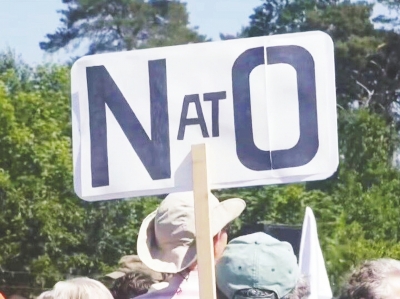 “对北约说不!”这是德国抗议者高举的一张标语牌。10日,在作为此次军演后勤中心的汉诺威地区文斯托夫空军基地,数百人参加抗议活动,呼吁通过对话解决乌克兰危机,尽快实现停火。11日,萨克森州也举行反对北约军演的抗议活动。12日,法兰克福附近的盖尔恩豪森镇举行和平倡议游行,抗议北约军演,呼吁通过对话和外交途径解决乌克兰危机。