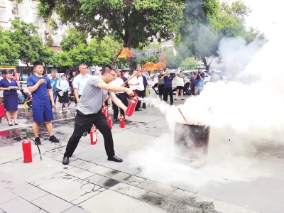 游仙区开展消防应急演练进小区活动。活动现场,演练模拟饭店起火的危急情况,火势迅速蔓延,现场浓烟滚滚。发现险情后,饭店工作人员立即拨打119及物业24小时值班电话。随即,扑救组、警戒组、疏散组、医疗保障组赶往现场,按照消防应急方案职责分工开展灭火,成功将“被困人员”转移到安全地带。20分钟内,人员疏散救助、火灾扑救顺利完成。“使用灭火器前一定要检查器材是否有破损。”“干粉灭火器在使用时一定要站在上风位。”……游仙消防救援大队消防员对灭火器的正确使用技巧、逃生技巧、水枪水带的使用方法等消防安全知识进行讲解,还邀请辖区居民体验灭火器灭火。