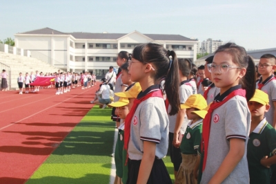 一到学校门口,小朋友们就受到了七一实验小学师生的热烈欢迎。六年级的哥哥姐姐牵好小朋友的手,有序走进操场排好队,小朋友们排在哥哥姐姐的队伍中,观摩了庄严的升旗仪式,小旗手们有力的步伐、挺拔的身姿让孩子们感受到了小学生朝气蓬勃的精神面貌。升旗仪式后,孩子们走进教室体验小学课堂,音乐课、英语课、足球课,互动式的快乐教学,孩子们乐在其中,眼里满是对小学生活的向往。