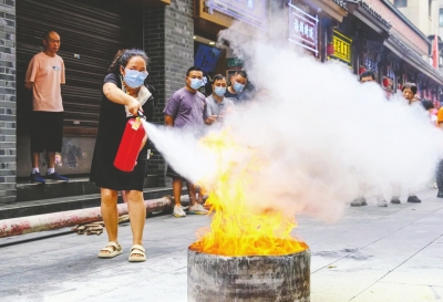 记者现场看到,消防救援人员现场指导,就火灾典型事故案例、灭火器使用、疏散逃生等进行全面分析讲解,进一步提高了商家、员工消防安全意识与技能。培训中,通过宣传车播放视频,以真实的火灾案例让大家认识到消防安全的重要性。用通俗易懂的语言讲解商铺消防注意事项,火灾现场如何灭火、逃生以及各类灭火器材的使用,帮助大家掌握防火、灭火知识和逃生自救技能。在消防救援人员的示范引导下,商户依次有序地拿着灭火器实操灭火(如图),通过实操的形式,让大家掌握灭火器的使用方法,并督促商户做好燃气安全隐患的自纠自检,做到早发现、早解决。