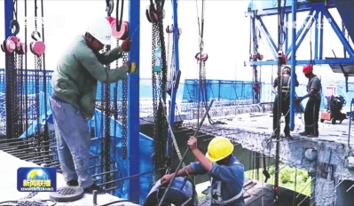 在潼江河特大桥26号墩顶部,工人们忙着准备机具、零件及各种材料,正在进行挂篮拆除和预应力张拉,全力推进潼江河特大桥连续梁施工,力争在今年7月底完成大桥双幅合龙,为全线2025年通车打下坚实基础。“我们现在上午6点上班,11点半下班,下午4点上班,到晚上7点下班,有的班组在夜间施工,尽量避开了高温的天气,感觉好多了。”工人宋延超说。