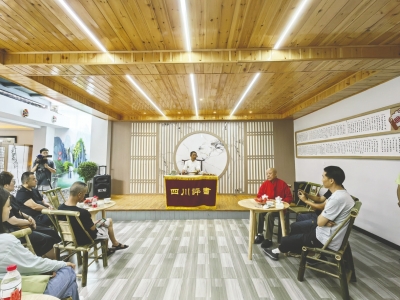 四川评书传习馆开馆,听一段评书是必不可少的节目。当天,杨文军创作的新评书《乡村振兴看秀水》首次对外演出,赢得到场观众的喝彩。随后,他还表演了传统评书故事《活佛济公》片段,同样受到大家的欢迎。