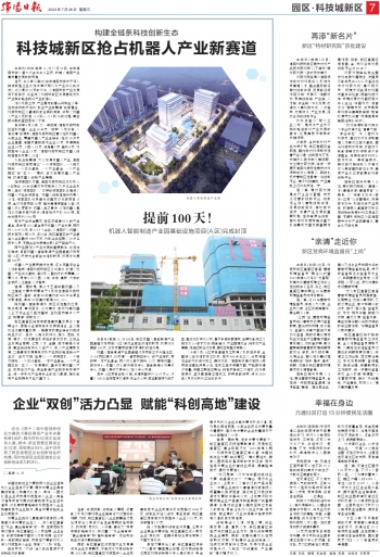 作为科技立市、产业强市的排头兵和主力军,在市委市政府作出“抢占产业新赛道”的部署后,科技城新区从瞄准到抢占再到奔跑,实现了机器人产业从无到有,从0到1,从1到30的过程,真正把绘制的蓝图落实了下来。