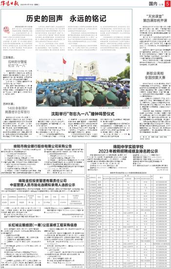 新华社沈阳9月18日电今年是“九一八”事变爆发92周年。18日上午,社会各界人士在沈阳隆重集会,举行撞钟鸣警仪式,以铭记历史、缅怀先烈。