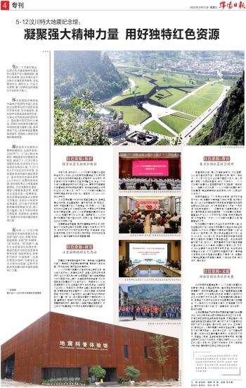 近年来,5·12汶川特大地震纪念馆探索建立红色资源“保护、活化、利用”机制,跳起摸高,发扬“拼”的精神、“闯”的劲头、“创”的勇气,做好红色资源活化利用文章,推动红色文化和红色资源创新性发展、创造性转化,在新时代讲好“中国故事”,弘扬抗震救灾精神,为建设社会主义现代化国家、实现中华民族伟大复兴的中国梦汲取前行力量。