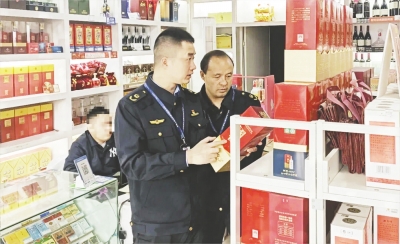 专项行动中,执法人员联合江小白、剑南春、泸州老窖、丰谷等川渝两地知名酒企打假人员共同摸排,现场对品牌白酒进行真假鉴别(如图)。检查中,执法人员现场普及知识产权相关知识,引导经营者树立公平、诚信、守法的竞争理念,提高消费者的识假辨假能力,营造全民参与打击侵权假冒工作的浓厚氛围。