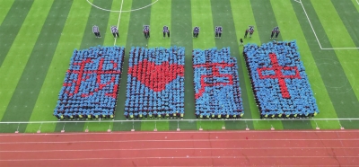 入场仪式后,全体师生高唱中华人民共和国国歌,五星红旗冉冉升起。芦中学子生在红旗下,长在春风里,迎着朝阳,绽放自己美丽的青春。在校歌声中升起了芦中校旗,芦中学子有坚定之信仰、独立之人格、矫健之体魄,必将在未来熠熠生辉。龙舞祥云,彩带绕身;芦中校园,龙腾虎跃。舞龙动作与音乐融合了中国梦,抒发了中华儿女追逐理想的豪迈情怀,也表达了芦中学子奋发开拓的精神风貌。