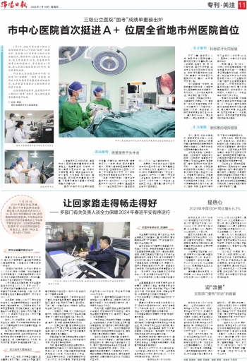 花更少的钱,得到更好的治疗。在推进DRG(按疾病诊断相关分组)付费工作中,该院积极优化管理模式,提升医疗服务能力,让医保基金使用更加高效,患者平均住院日逐步降低、看病就医费用大幅下降,近期在接受国家医保局医保改革调研时获得满意效果。