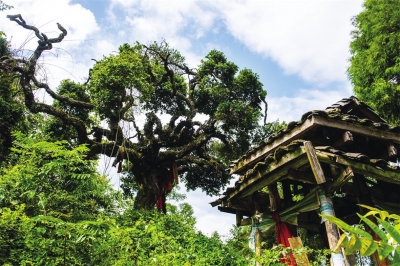在北川羌族自治县漩坪乡白溪村漩坑垭海拔1400多米的山上,透过仲春的晨雾,远远能看到两棵相距不到30米的千年古树。