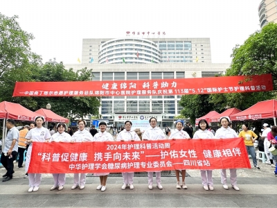 本报讯(谯艳 李红 记者 唐舒琪 文/图)5月10日上午,绵阳市中心医院在生命广场和经开区塘汛街道分别举行糖尿病护理专委会、伤口造口团队、内分泌代谢科、肾病内科、骨科、呼吸与危重症科、烧伤整形科及消化内科等多学科联合科普义诊活动(如图)。