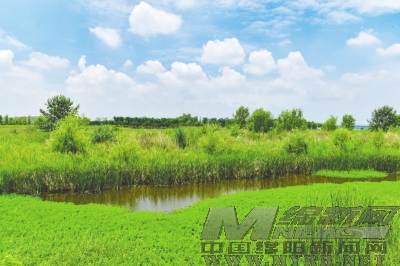 河水清澈映蓝天,水草丰茂美如画,一处处设计新颖的“口袋公园”镶嵌在河两岸,小桥栈道蜿蜒其间,构成了一幅人与自然和谐共融的湿地风光画卷。