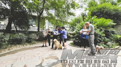 首先是宣传引导犬主文明养犬。采取“线上+线下”方式,通过张贴文明养犬标语、发放倡议书等多种形式,对《绵阳市养犬管理条例》进行重点宣传,提升市民知晓度,引导市民自觉养成依法文明养犬良好习惯。