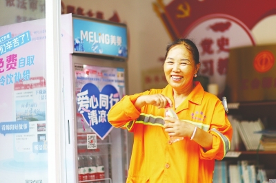 记者了解到,目前投运的5台“涪宝爱心冰柜”经过严格选址,均设置在人流密集的街头,向环卫工人、建筑工人、快递员、外卖小哥、一线干警等户外工作者提供免费的冷饮。