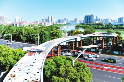 目前,两座天桥主体均已完工,正加快电梯附属设施、栏杆幕墙等施工,计划10月完工投入使用。
