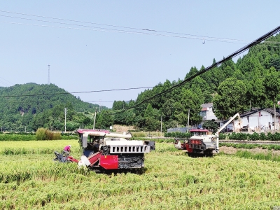 同样,在富驿镇雄关村,趁着晴好天气,村民陈文林将刚收获的稻谷,晾晒在自家门前屋后。“今年由于使用了优质良种,加上科学管理,水稻亩产基本上在650公斤左右,与去年相比增加了近50公斤产量。”看到这样的丰收景象,陈文林倍感欣喜,从过去的人扛牛拉到现在机械化耕种,大大减轻了劳动强度,提高了耕作效率。