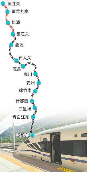 据介绍,川青铁路起自成都东站,终到西宁站,正线全长约836公里,设计时速200公里,为国家Ⅰ级双线铁路。此次开通的镇江关至黄胜关段全长约69公里,位于阿坝州松潘县境内,设有镇江关、松潘、黄龙九寨和黄胜关4座车站。