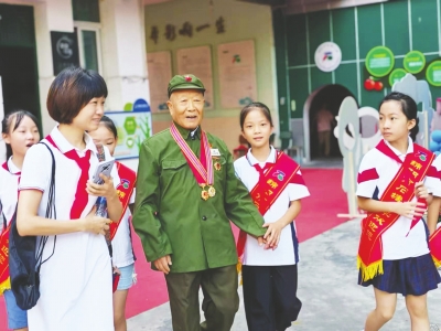 本报讯(记者 杨沐琪 郑金容 文/图)9月4日,市退役军人事务局、市烈士纪念设施保护中心邀请抗美援朝老兵徐德成来到绵阳市石塘小学,向师生宣讲抗美援朝战斗故事,弘扬爱国主义精神,让红色基因代代传承。