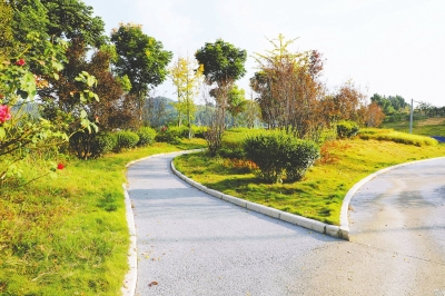 石材铺装的游道、刻绘盐亭历史人文符号的栏板、绿草如茵的草坪、四季常青的景观树……行走在盐亭县滨江生态河堤景观带,优美的环境让人心旷神怡。